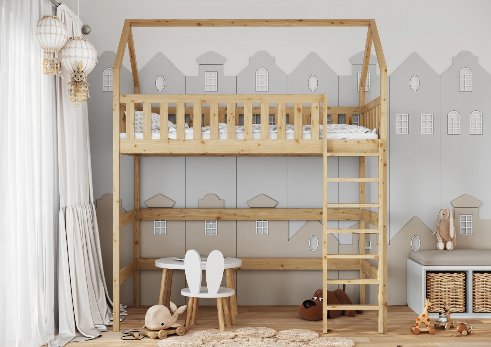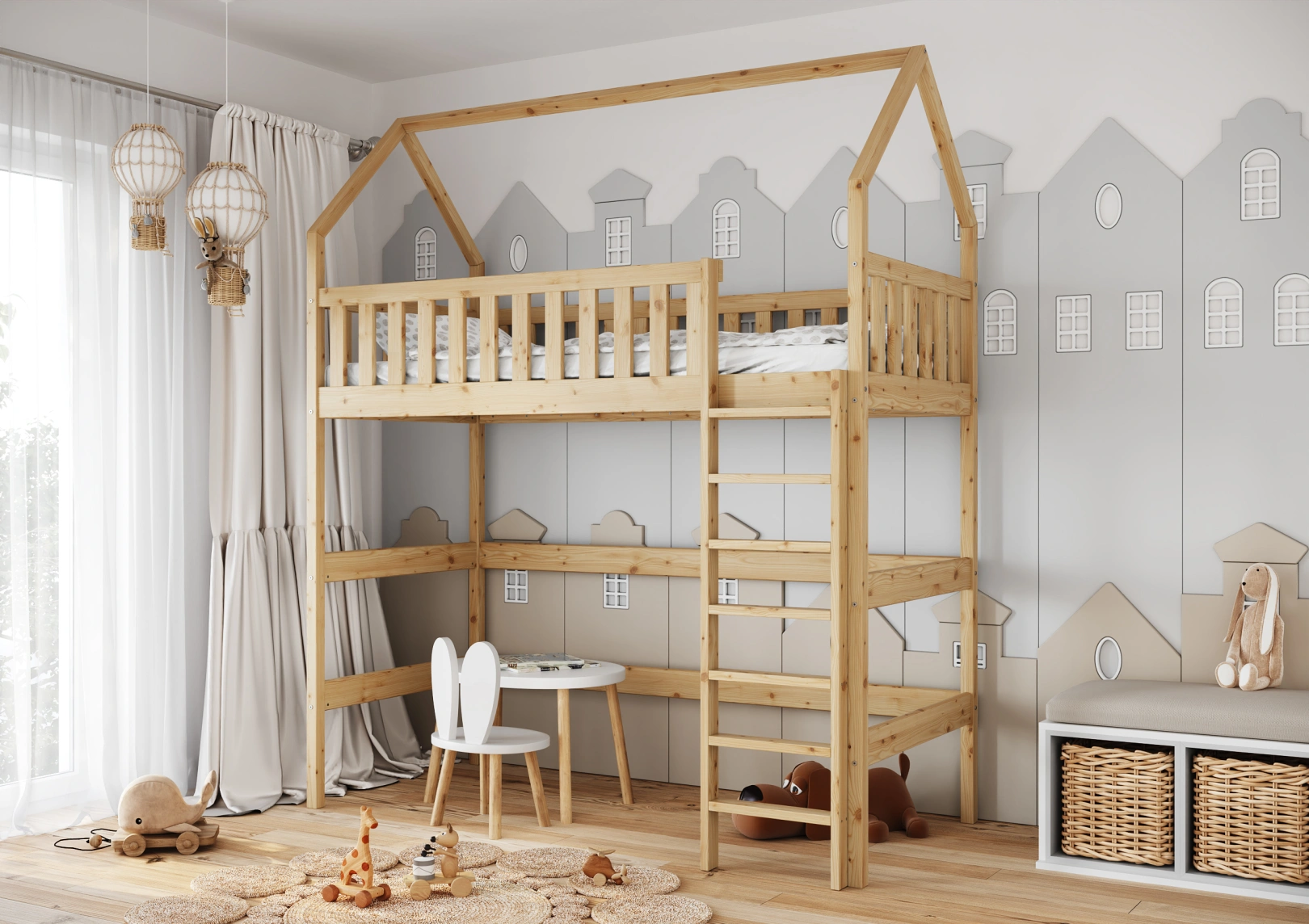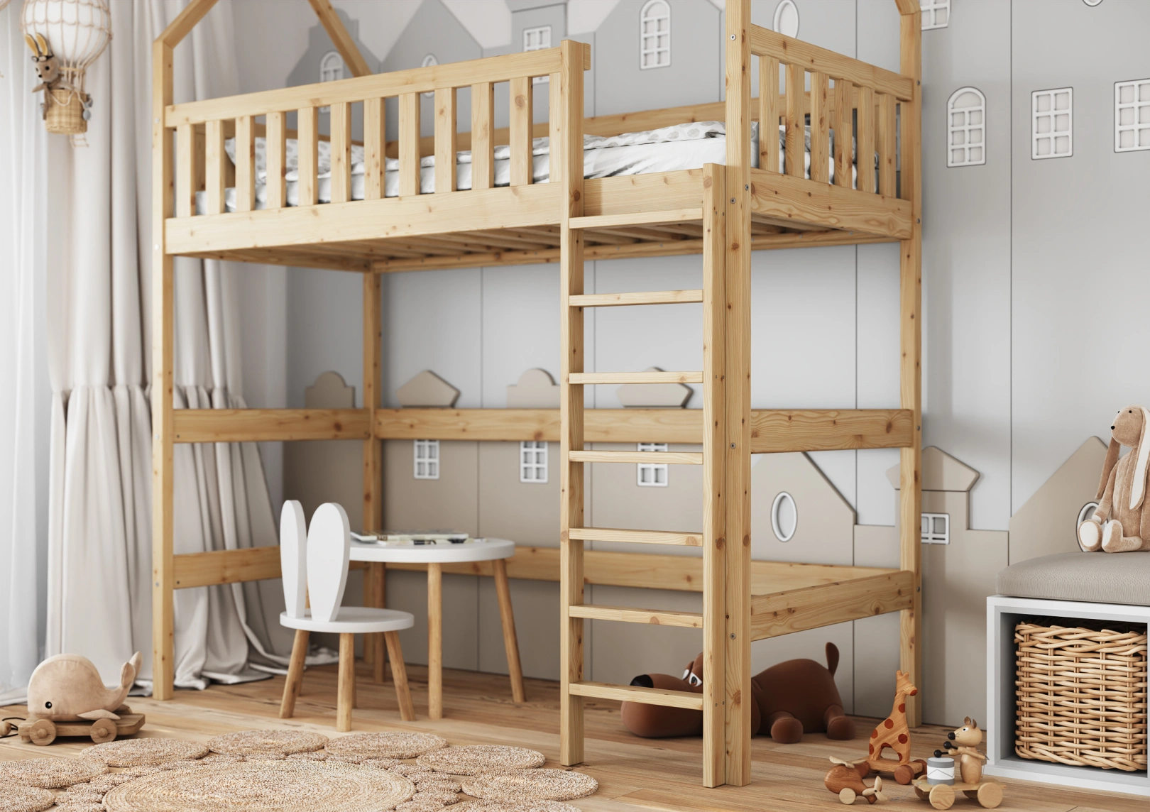 Łóżko piętrowe Alan zostało zaprojektowane tak, aby każde dziecko mogło cieszyć się niekończącymi się zabawami i harcami. Górna część, czyli antresola, pełni rolę tradycyjnego miejsca do spania, ale także staje się areną dla niezapomnianych zabaw w dom, sklep lub przedszkole.