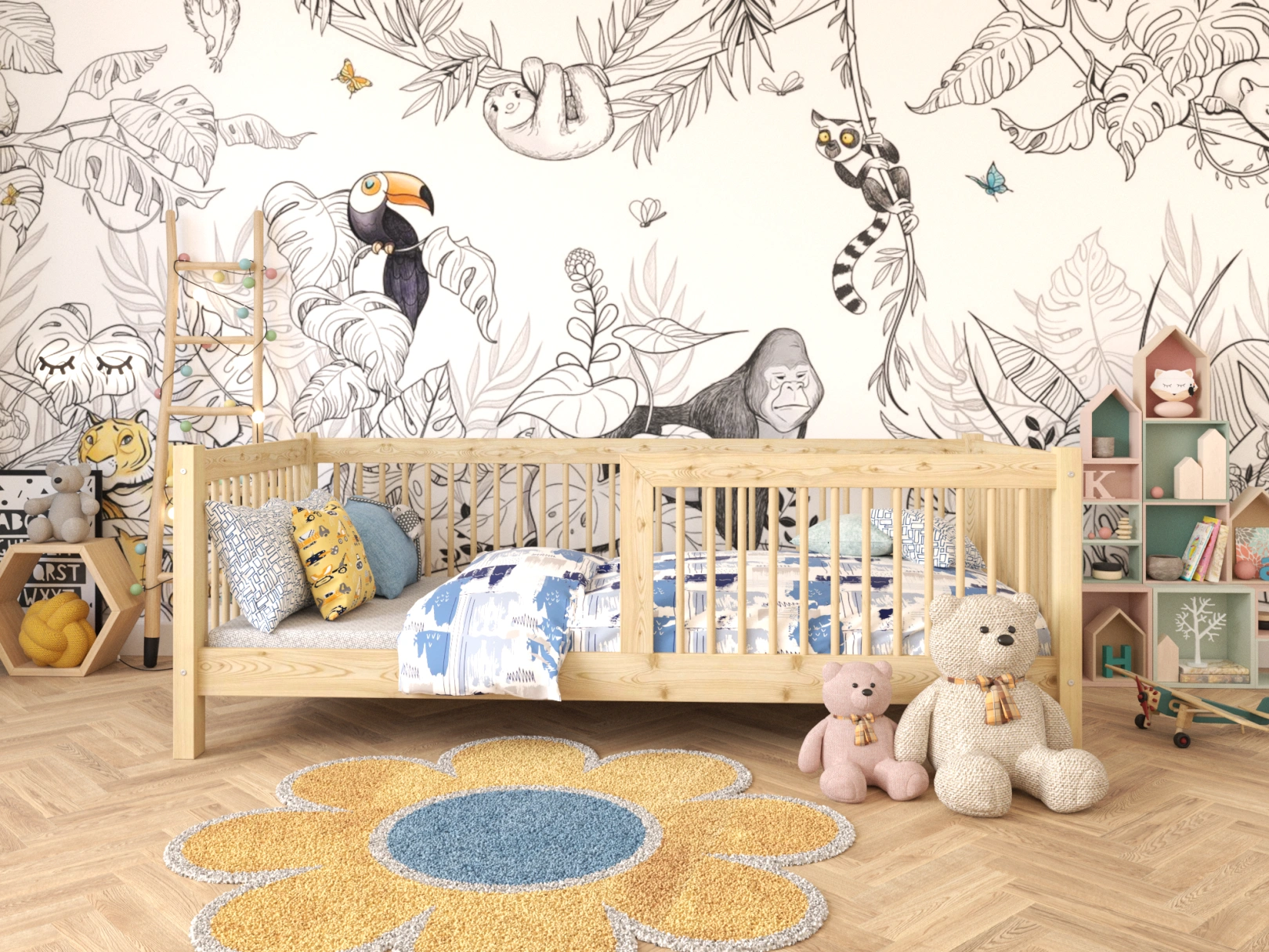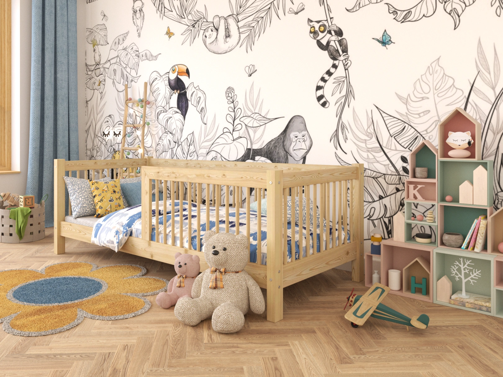 Wszystkie krawędzie są zaokrąglone, a łóżko zaprojektowane z myślą o maksymalnym bezpieczeństwie Twojego dziecka. Wszystkie elementy są dokładnie wykończone, a drewno jest gładkie i przyjemne w dotyku.