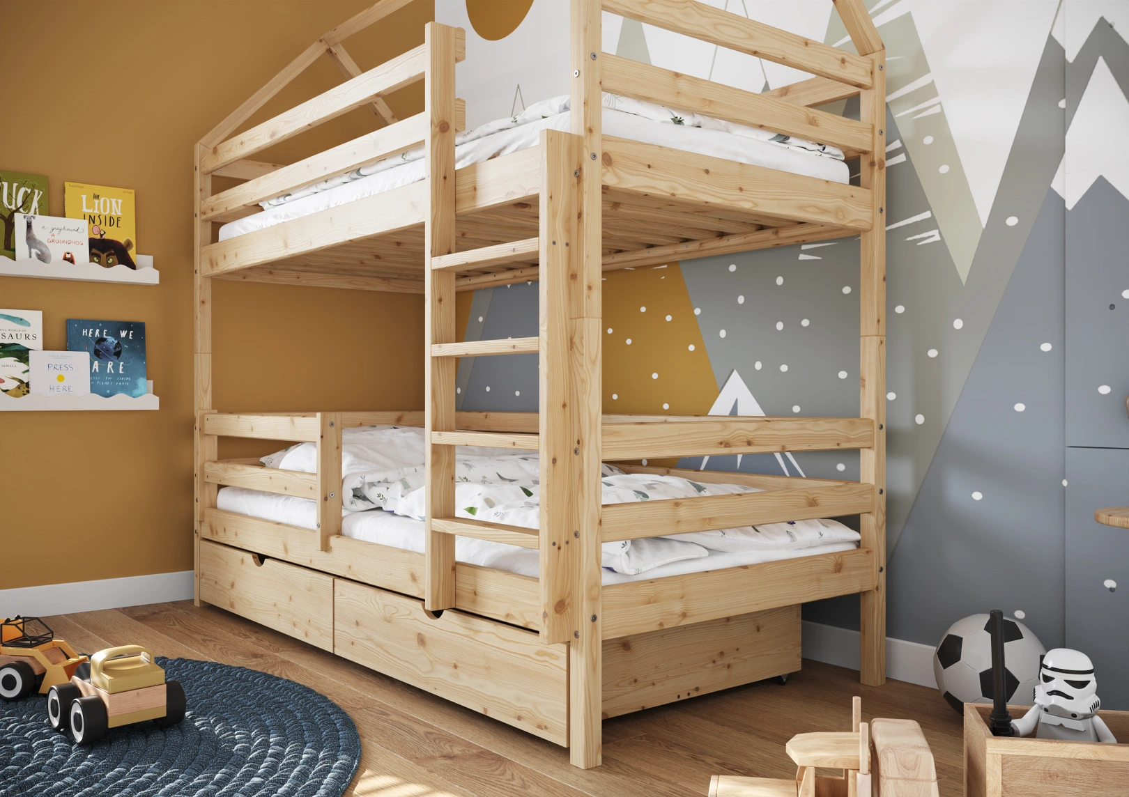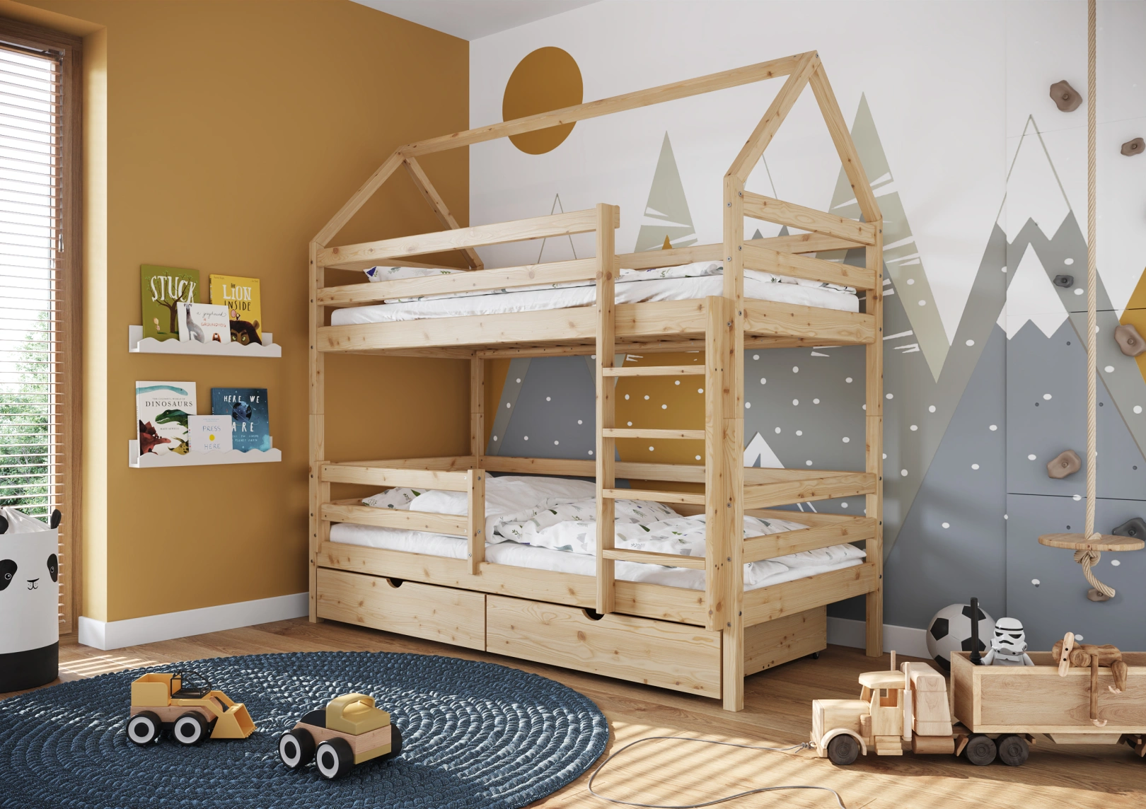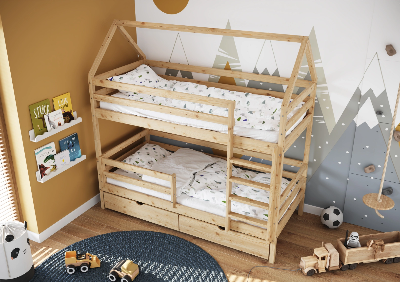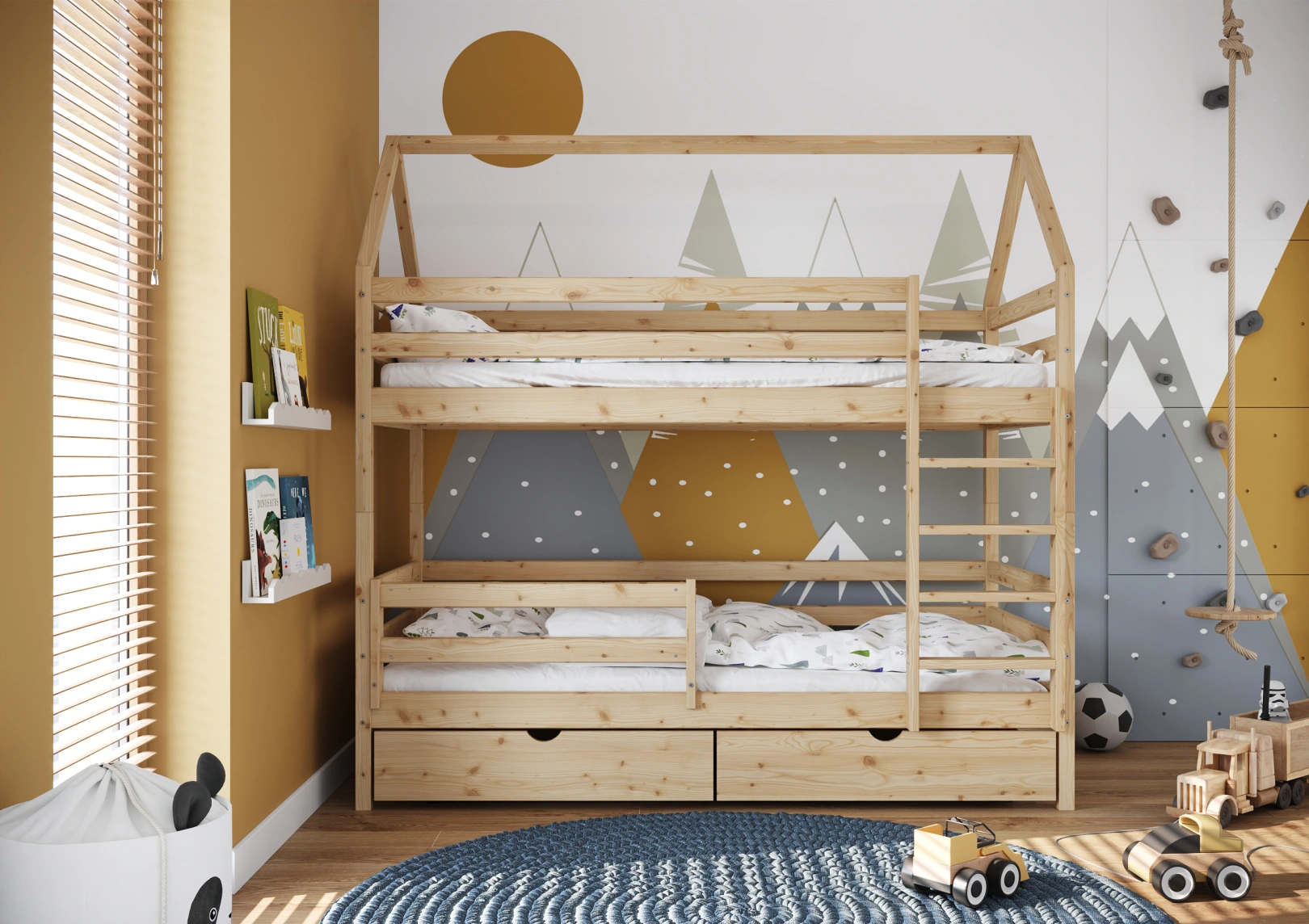 Łóżko piętrowe Dorian to idealne rozwiązanie dla rodzeństwa w każdym wieku. Solidna konstrukcja z gęstymi frontami i mocnymi barierkami ochronnymi, zapewniająca bezpieczeństwo i wygodę. Zaokrąglone krawędzie chronią maluchy przed urazami.
