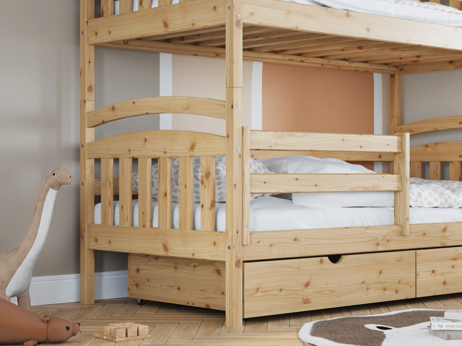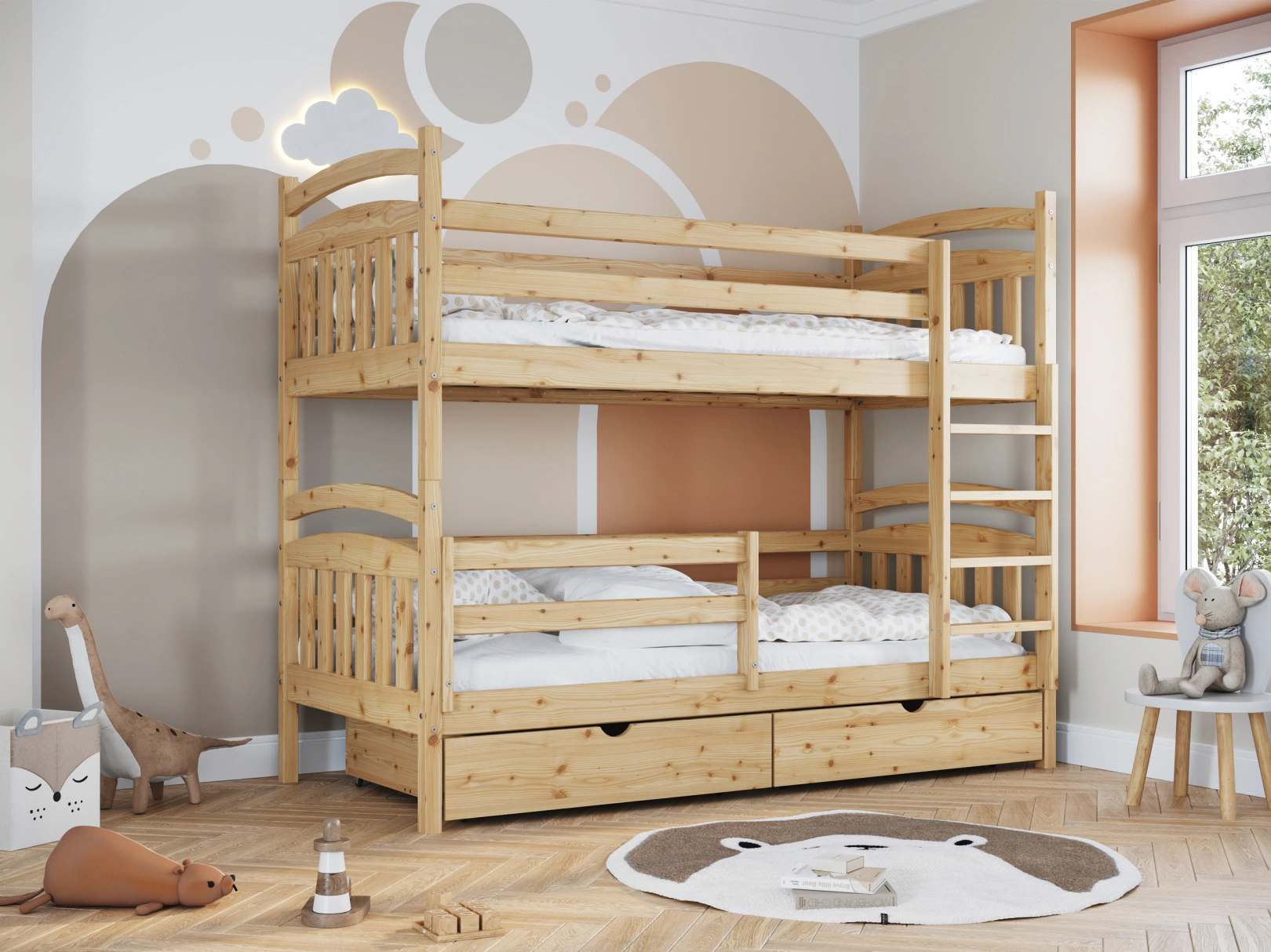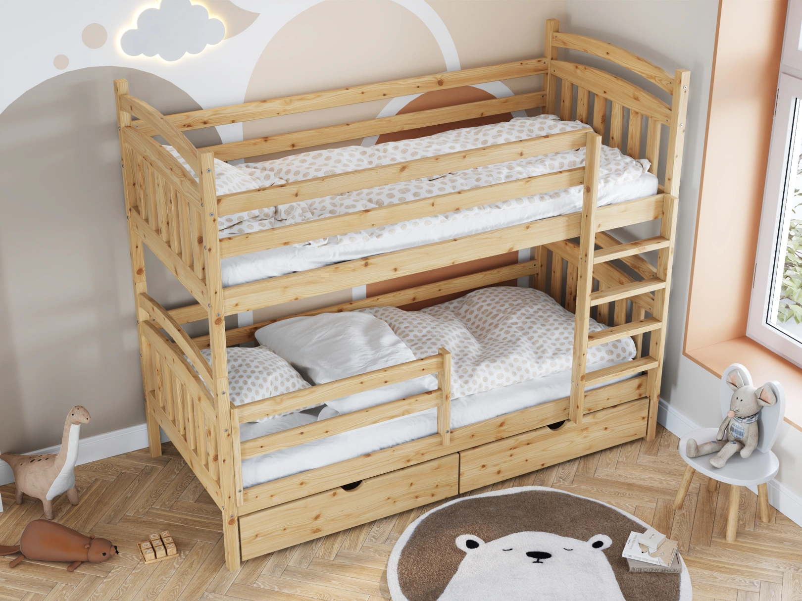 Łóżko piętrowe Piotr dla miłośników klasyki i bezpieczeństwa