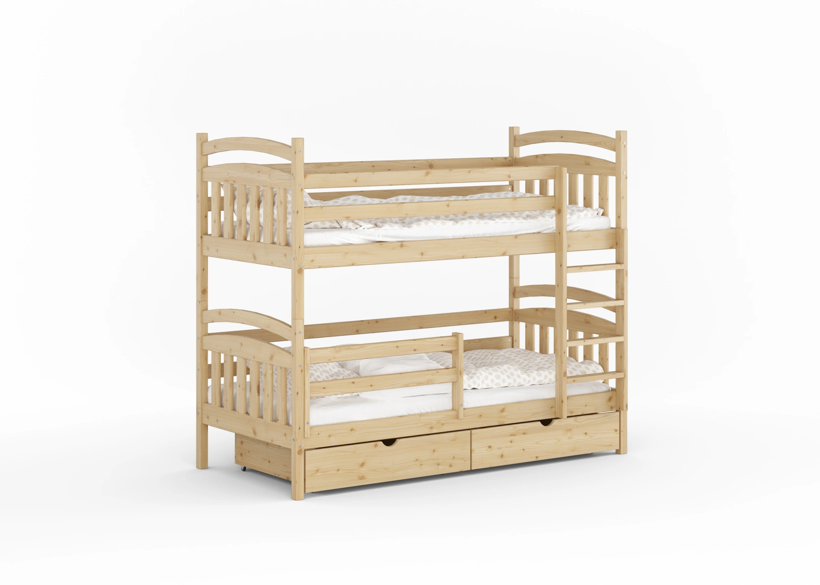 Łóżko piętrowe Piotr, potomek naszego Dawida, zachwyca prostotą i tradycyjnymi zagłówkami. Doskonałe rozwiązanie dla pokojów rodzeństwa w każdym wieku. Solidna konstrukcja z gęstymi frontami i mocnymi barierkami ochronnymi, zapewniająca bezpieczeństwo i wygodę.