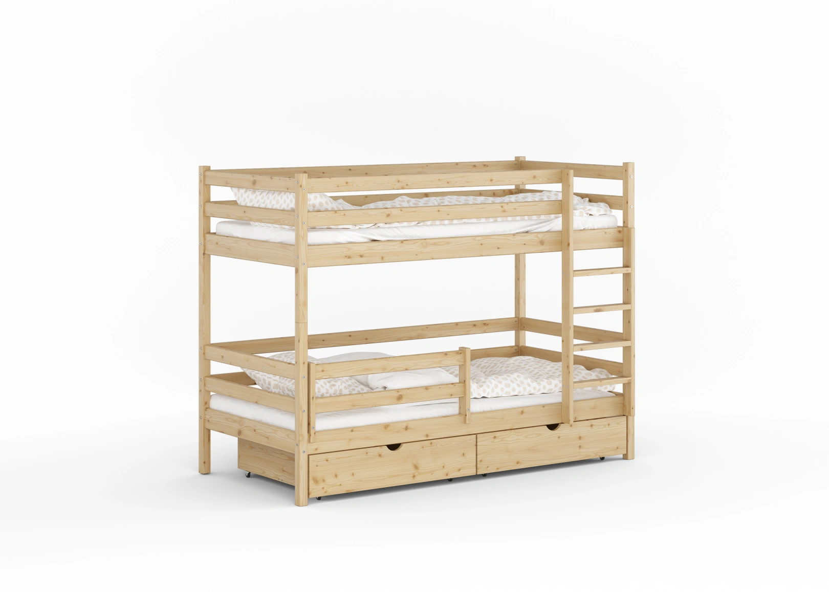 Łóżko Dawid to udoskonalona wersja modelu Reja, z lekką konstrukcją utrzymaną w neutralnej stylistyce. Podwyższone bariery zabezpieczające oraz wyższe zagłówki zapewniają większe bezpieczeństwo. Wykonane z litego drewna sosnowego, gwarantuje komfort i bezpieczeństwo. Zaokrąglone krawędzie i solidny stelaż z drewnianych desek podnoszą nośność do min. 140 kg. Wyposażone w stabilną drabinkę ułatwiającą wspinanie się na górne piętro.