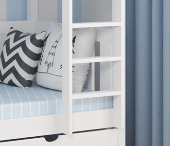 Solidna drabinka do łóżka z drewna sosnowego z szerokimi stopniami i poręczami zapewnia bezpieczny dostęp do górnej części. Idealna dla trzylatków, gwarantuje stabilność łóżka. Estetyczny dodatek, który jednocześnie ułatwia życie i ozdabia pokój
