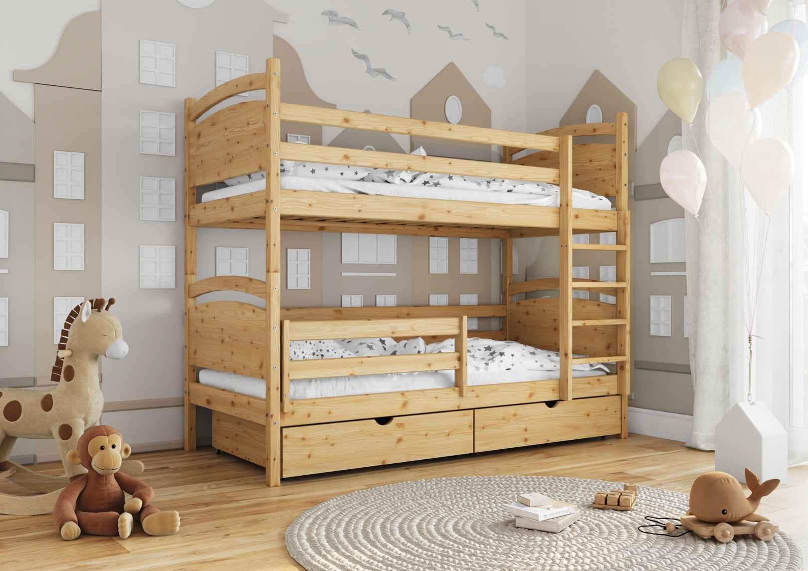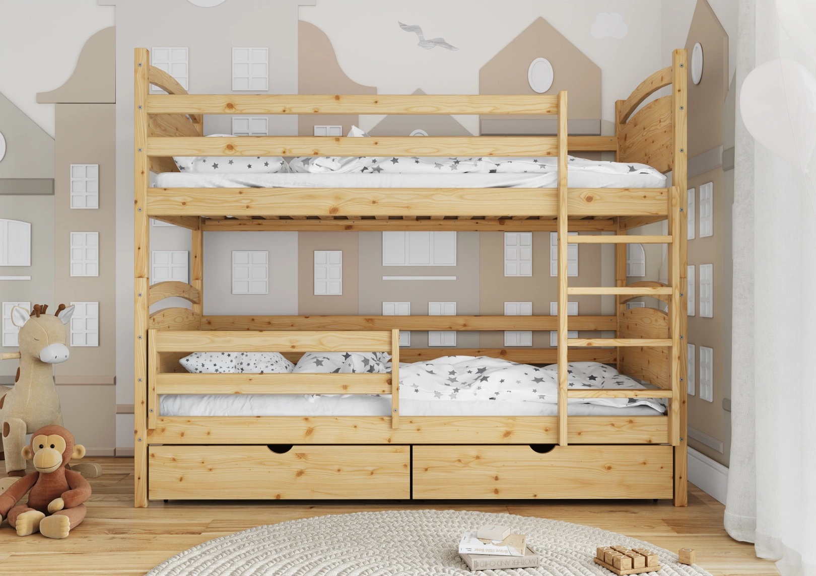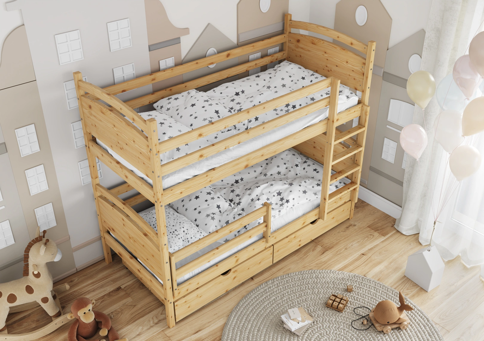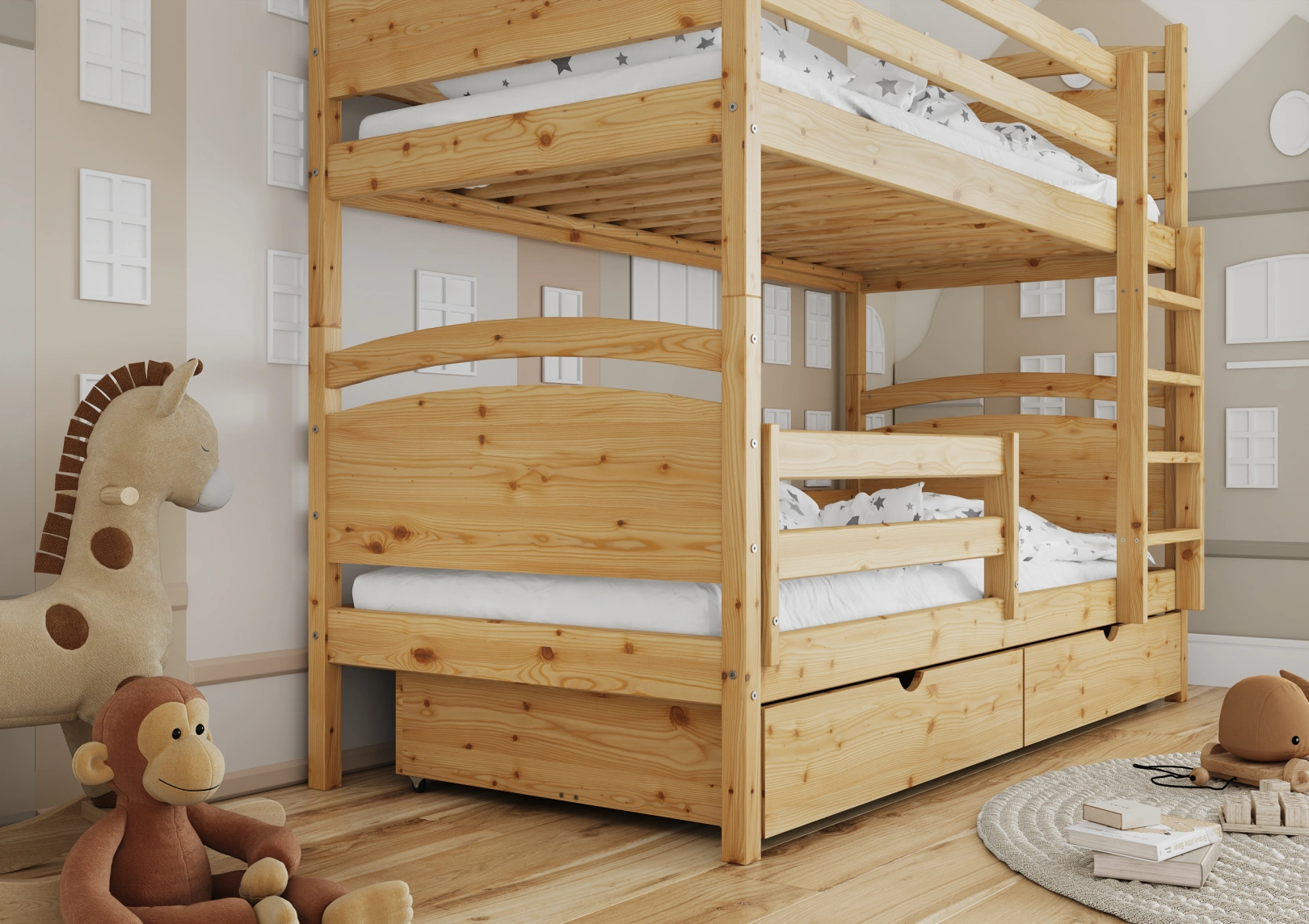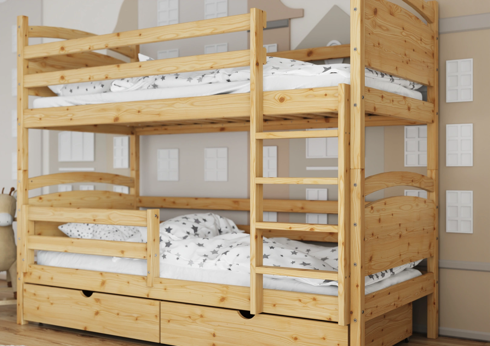 Solidna drabinka do łóżka z drewna sosnowego z szerokimi stopniami i poręczami zapewnia bezpieczny dostęp do górnej części. Idealna dla trzylatków, gwarantuje stabilność łóżka. Estetyczny dodatek, który jednocześnie ułatwia życie i ozdabia pokój